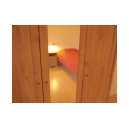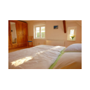 - Ein Familienzimmer mit Doppelbett, Einzellbett hinterm Schrank und einem Kinderbett